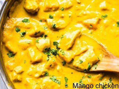 Boneless chicken cooked with aromatic mango & cashew sauce